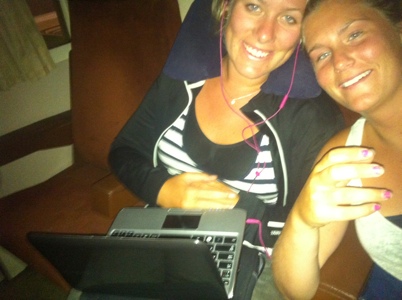 Matilda tjötar med spanjorskan som hakade på oss, hon va lite påfrestande emellanåt så vi byttes av 😉